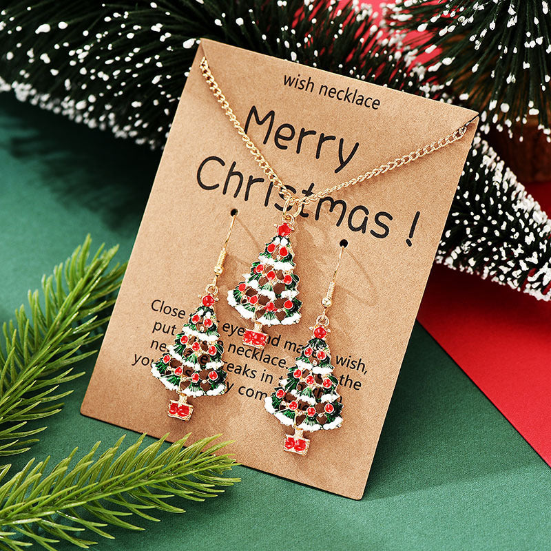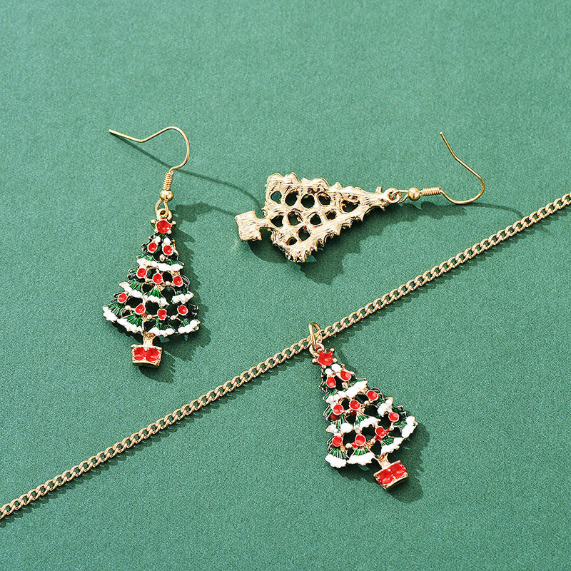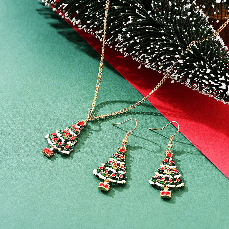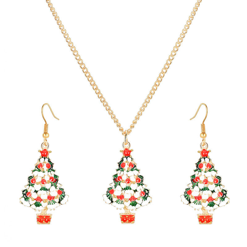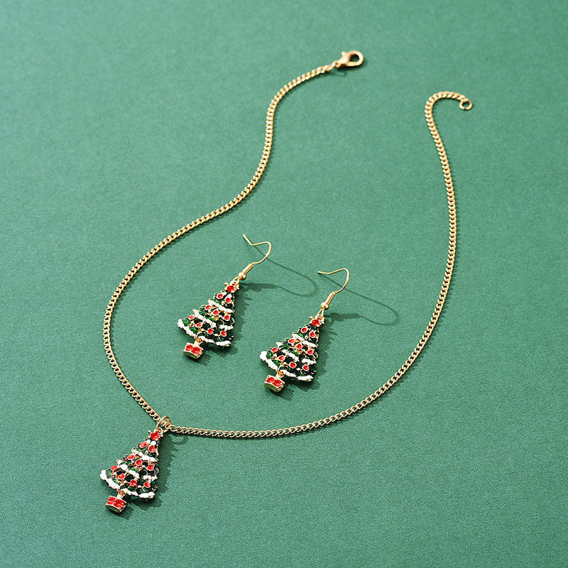Material: alloy Treatment process: oil dripping Style: Christmas tree Set combination: earrings+necklace