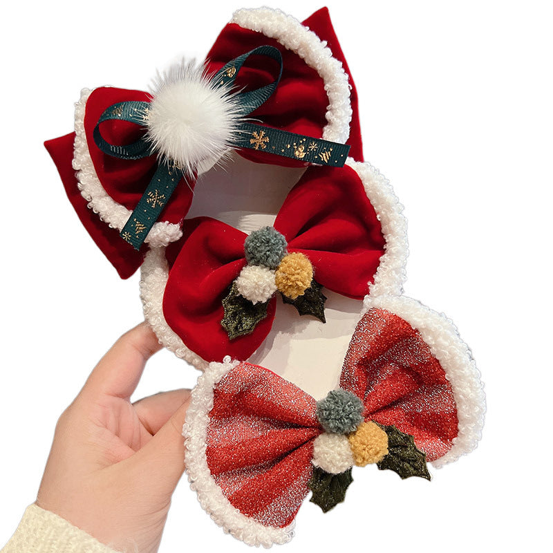 Red Big Bow Fur Ball Hair Accessories Christmas Decorations