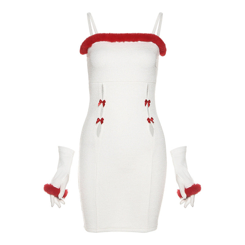 Christmas Solid Color Slim Fashion Plush Side Suspender Dress Women