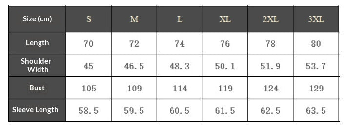 Sizes: S, M, L, XL, XXL, 3XL