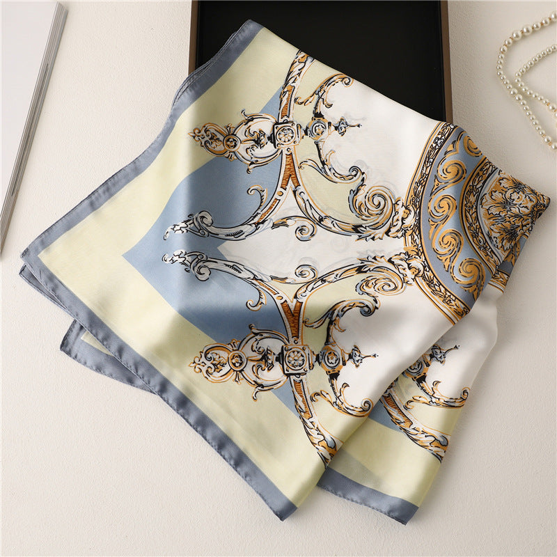 Applicable gender: female Material: imitation silk Color: FJ588-1 orange, FJ588-2 turmeric, FJ588-1 orange, FJ588-2 turmeric, FJ412-1 beige, FJ412-2 yellow khaki, FJ412-3 Morandi blue, FJ412-4 black beige, FJ412-5 leather powder, FJ412-6, FJ412-7 fresh green, FJ635-1 Style: elegant celebrity Length (CM): 70 * 70cm Weaving method: plain weave Pattern: Totem